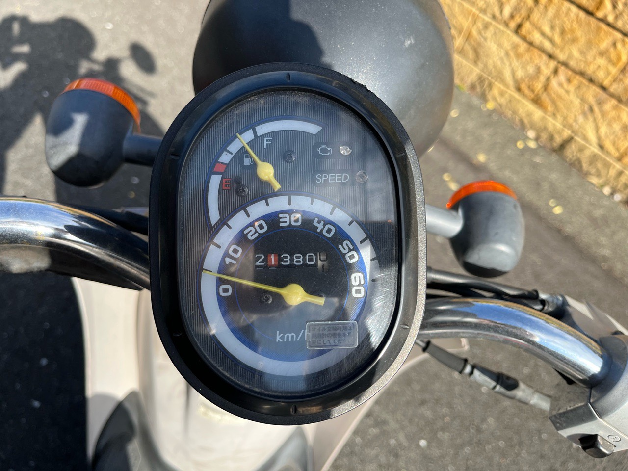 右直事故に遭われたスクーターで、フロント部分が大破し、フレームも曲がっていました。