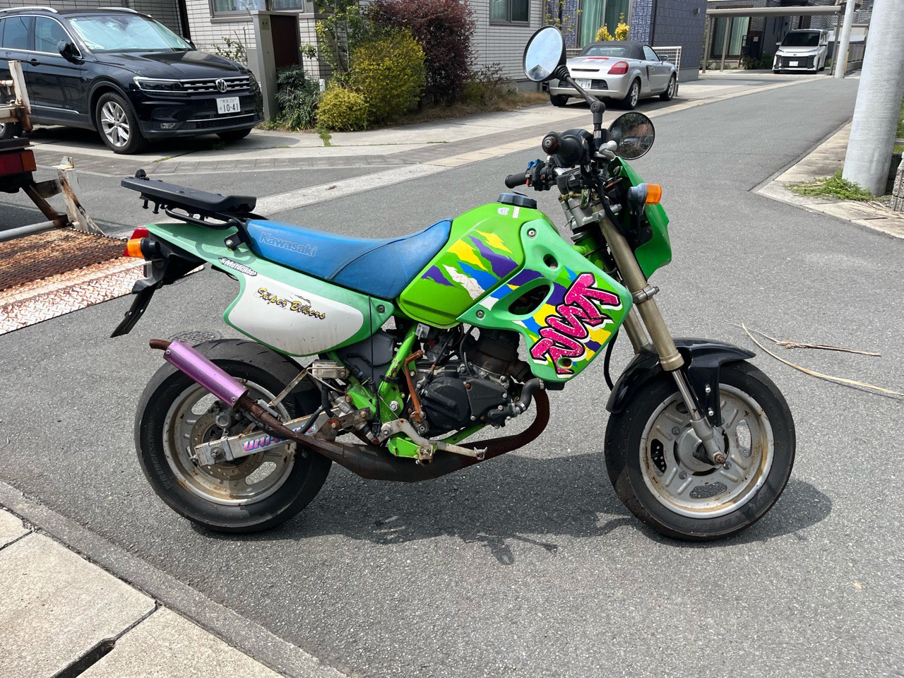 現状は不動でマフラーが改造されていました。車体の腐食が目立ちました。